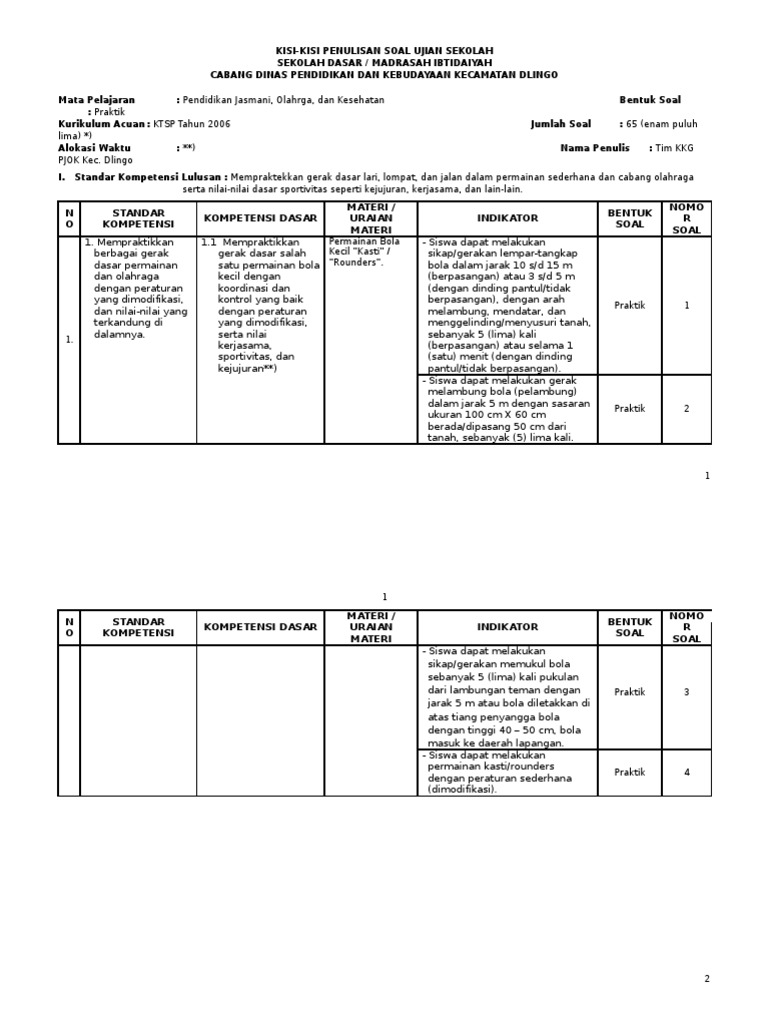Lampiran husnil 16 19 docx lampiran 1 format penilaian rencana pembelajaran apkg i format penilaian rencana pembelajaran apkg i nama mahasiswa nim course hero. May 04, 2018 · kisi kisi ujian praktek penjas smp 2012. Tim kelompok guru olahraga ( kkgo ) 2016 daftar isi penilaian ketrampilan proses / penilaian acuan norma ujian praktik mata pelajaran pendidikan jasmani tingkat sd tahun pelajaran 2015 / 2016 i. Ujian praktek pendidikan jasmani tahun pelajaran 2015/2016 norma evaluasi dengan pendekatan penilaian ketrampilan proses/penilaian acuan norma disusun oleh : Dan smk dinas pendidikan kota bekasi tahun pelajaran 20132014 lembar soal pemerintah kabupaten trenggalek dinas ke tugas pendidikan jasmani olah raga dan k soal penjaskes smk 2009 soalujian.net soal ujian praktik penjaskes smk